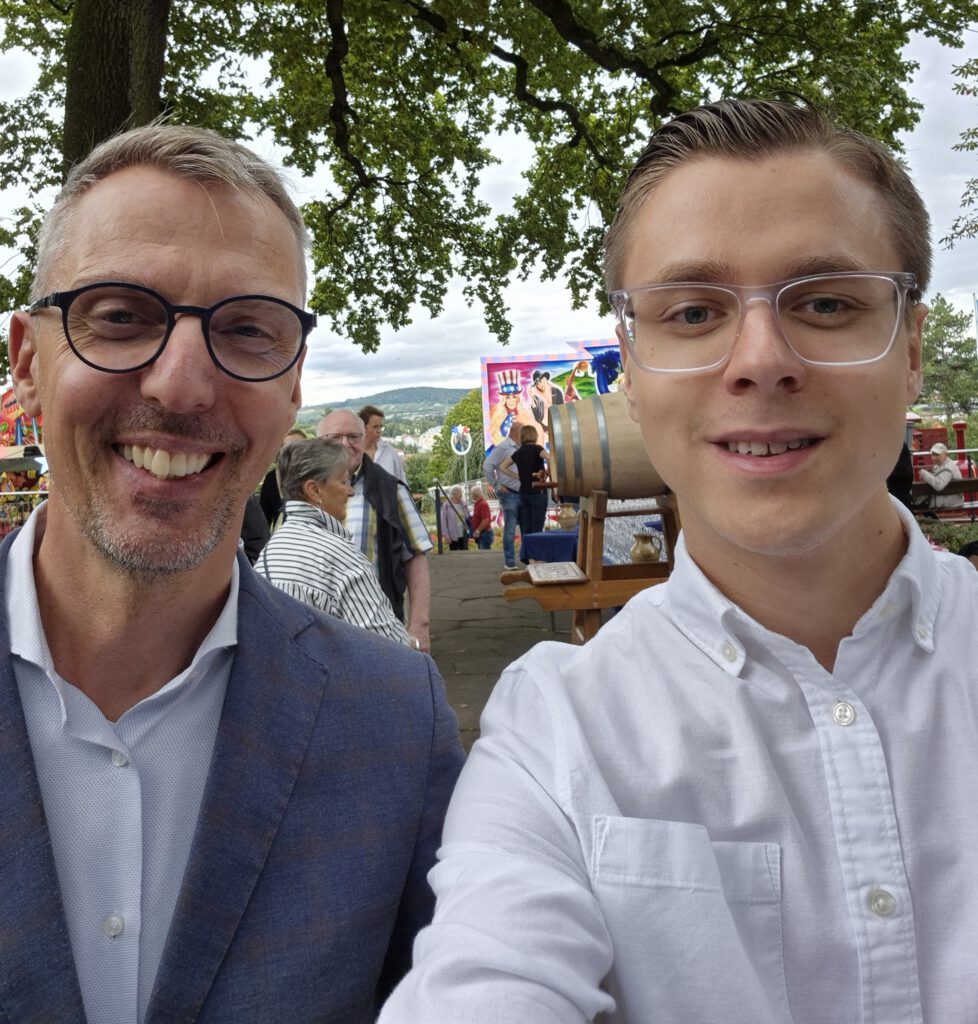 Selfie an meinem letzten Praktikumstag bei Lars. Wir besuchten ein Weinfest in seinem Wahlkreis.